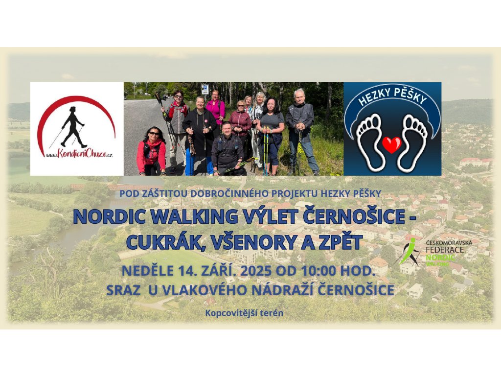 • Sraz je v neděli 14.9.2025 v 10:00 hod u vlakového nádraží Černošice